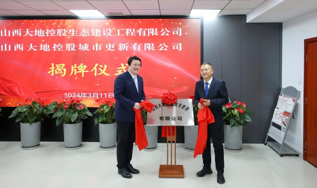 3月11日,大地控股旗下山西大地控股生态建设工程有限公司、山西大地控股城市更新有限公司在太原正式揭牌成立。大地控股党委书记、董事长李卫平和党委副书记、副董事长、总经理侯利强出席并揭牌,党委委员、副总经理王雷致辞,党委委员、纪委书记、监察专员温国政出席,总经理助理尉峻主持,山西八建集团党委书记、董事长裴卓非等参加揭牌仪式。