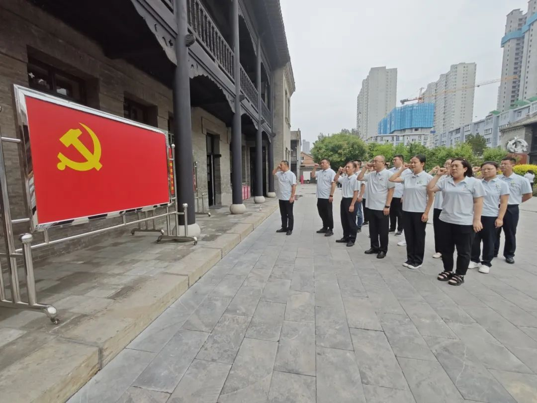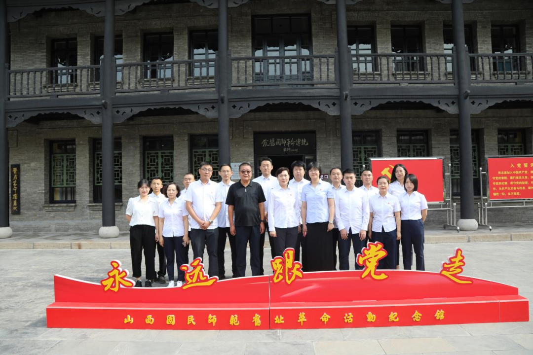 大地民基党委赴山西国民师范旧址革命活动纪念馆开展“致敬建党伟业 赓续红色血脉”主题党日活动。在纪念馆主楼前,全体党员干部面对鲜红党旗,肃穆而立,高举右拳,重温了入党誓词,用铿锵誓言表达不忘初心、牢记使命的理想信念。在图书馆里,大家自行阅读红色书籍,回首辉煌岁月,致敬建党伟业。