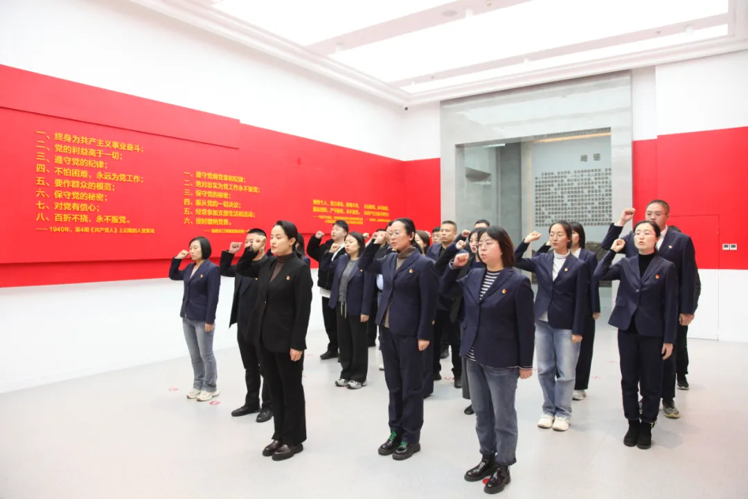 参观结束后,全体党员举起右拳、重温入党誓词,叩问初心、检视自我,进一步牢记自己的使命与责任,坚决捍卫“两个确立”。